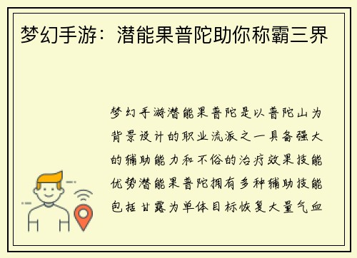 梦幻手游潜能果普陀是以普陀山为背景设计的职业流派之一,具备强大的辅助能力和不俗的治疗效果。